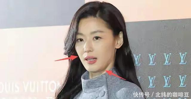 当然,这些都是玩笑话,说到底,全智贤已是明日黄花大势已去,加之辱华剧风波带给她的负面影响,令其人气愈发低迷,所以,任何动作都可能引发足以毁其形象的解读。 但不可否认的是,全智贤的确弓背缩脖外加屈膝,明显不是一线演员该有的正常状态,总让人觉得严重缺乏安全感。 尤其是在她身边的孔刘,还有其余五个爱豆自然随意、表情从容的衬照之下,就更显得畏畏缩缩了。 这次辱华剧风波,不仅是全智贤事业的分水岭,她的容貌似乎也突然之间老了好几年。 此前,尽管全智贤已经40多岁,但是一个毫无死角的脸蛋,在韩式化妆术的加持下,依然可以帮她营造出吹弹可破、光滑无皱纹的效果。 但自从遭遇抵制后,她的面庞,却肉眼可见地发干发皱,皮肤松弛,双下巴都出来了,法令纹和鱼尾纹就更不用说了,怎一个垮字了得!